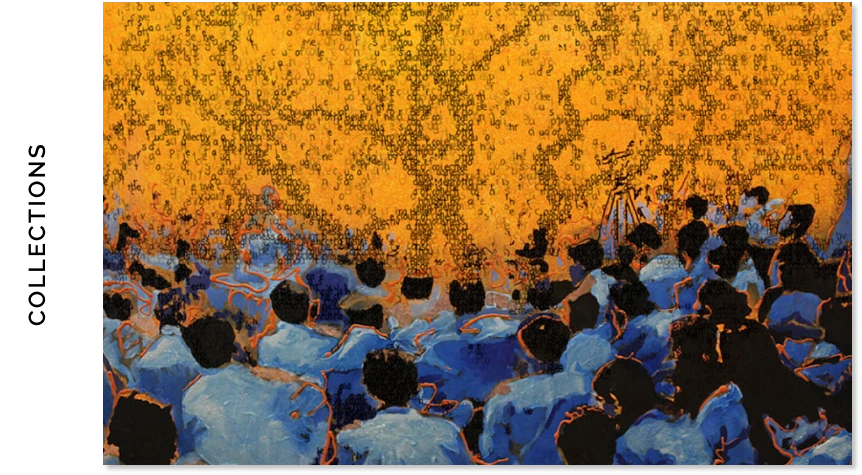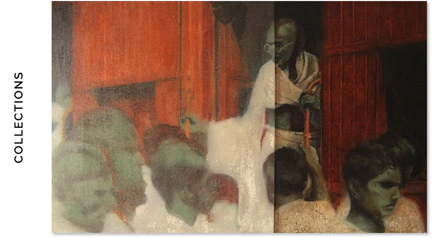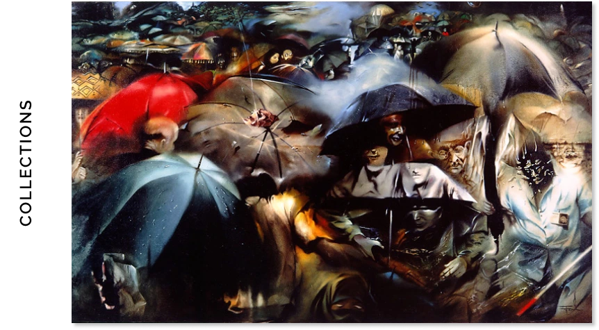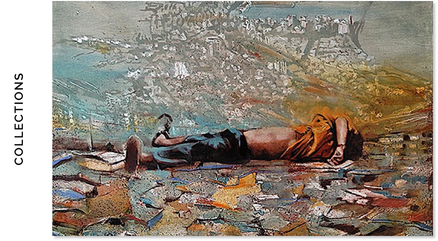 In this series, the paintings are social commentaries, juxtaposed or contrasted with city skylines, offering a piquant look of life in the metropolises. This confluence of people fires our imagination, feeds us with its spoils and simultaneously subjects us to its disconcerting side.