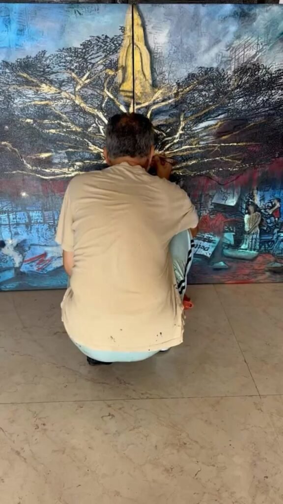 Over the years, he has created a significant body of work that incorporates digital elements; everything from digital overlays on canvas, to video art installations. He believes that paintings are essentially ‘mute’ and that they should have an ability to speak for themselves – an outcome he has found is best expressed with mixed media works, that allow him both flexibility and the space to innovate.